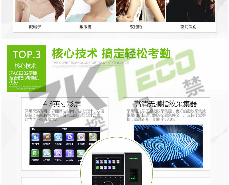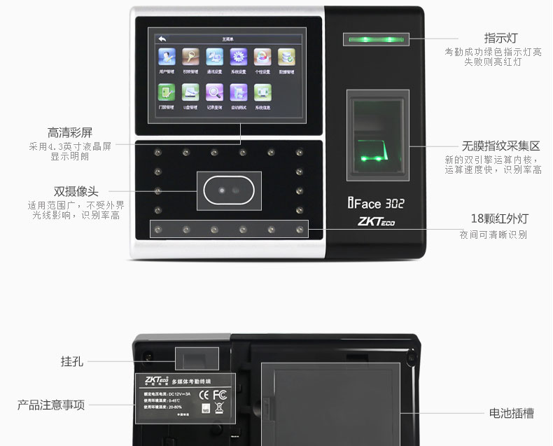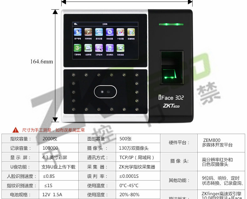 面部識(shí)別考勤機(jī)iface302 指紋打卡簽到設(shè)備