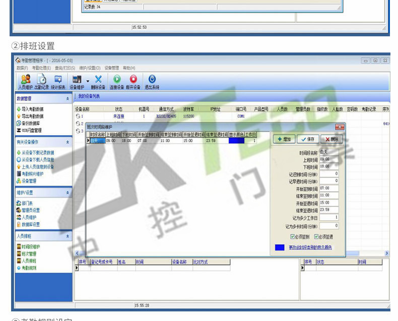 · 考勤功能: 外接定時(shí)響鈴、夏令時(shí)、記錄查詢、工作代碼、短消息