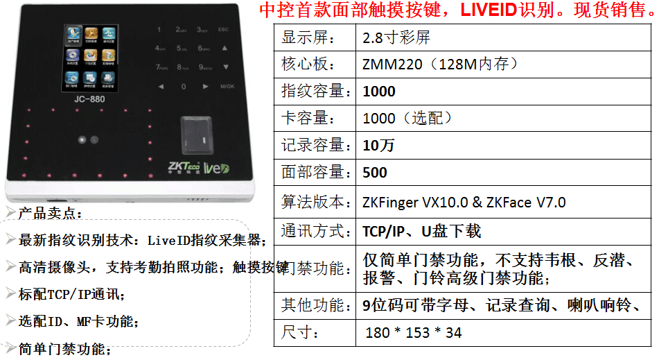 面部識(shí)別考勤機(jī)zk-jc880 磁吸式門(mén)禁系統(tǒng)