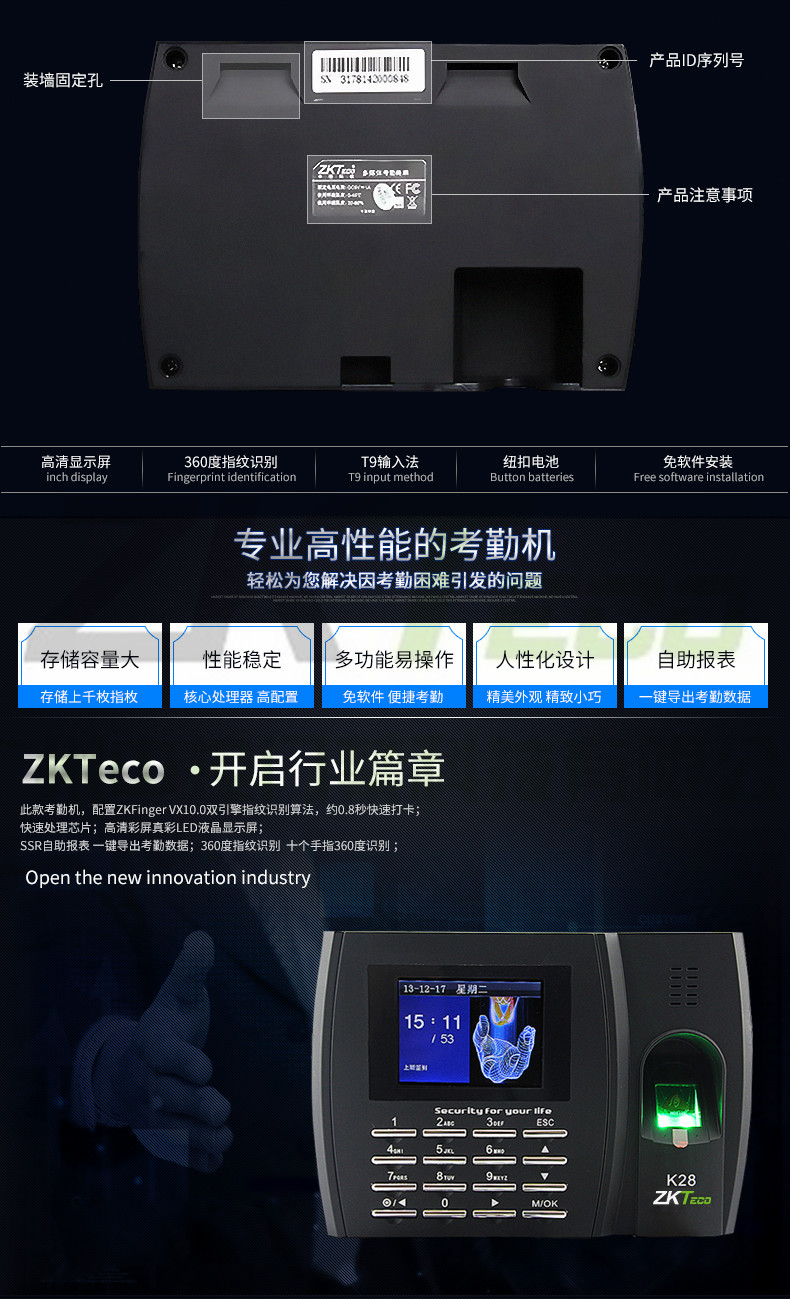 簽到彩屏打卡機(jī) K28指紋考勤機(jī)