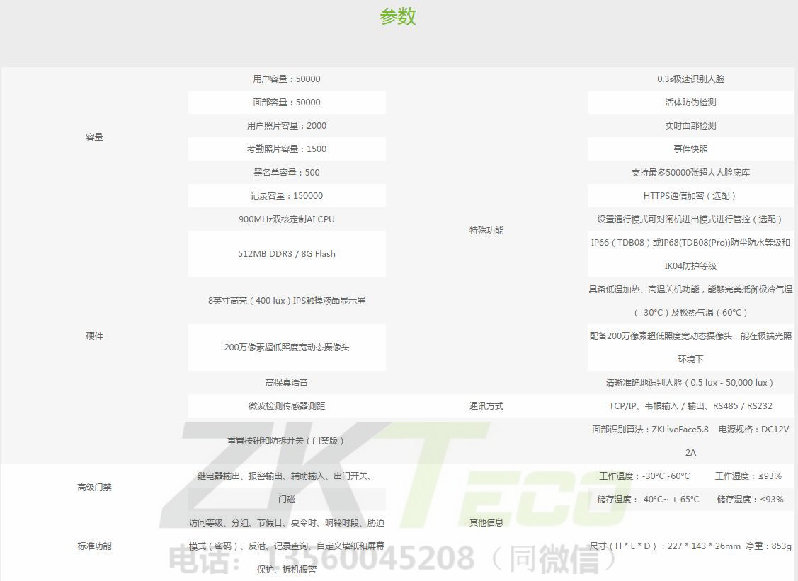 TDB08是中控智慧可見光產(chǎn)品系列的全面升級(jí)版本,適用各種場(chǎng)景。TDB08搭配最新定制的AI CPU,用于運(yùn)行面部識(shí)別算法,以提高其各方面的性能。配備強(qiáng)大的CPU和最新AI深度自主學(xué)習(xí)面部識(shí)別算法,揭開生物識(shí)別領(lǐng)域新篇章。此版本支持最多50,000張人臉底庫(kù),人臉識(shí)別速度小于0.3秒,采用雙目光電硬件+活體識(shí)別算法,對(duì)打印的高清人臉圖片、照片、人臉圖像視頻以及各種材料面具的攻擊,具有較強(qiáng)的防偽能力。除強(qiáng)大的CPU和人臉?biāo)惴?,TDB08還配備了最新的超低照度寬動(dòng)態(tài)攝像頭,使終端能夠在極暗環(huán)境下(0.5 lux)進(jìn)行人臉識(shí)別,同時(shí)應(yīng)用微波探測(cè)器,精確計(jì)算用戶與設(shè)備之間的距離,從而喚醒識(shí)別終端。設(shè)計(jì)堅(jiān)固耐用,可在極端天氣下正常運(yùn)作,能夠完美抵御極冷氣溫(-30°C)及極熱氣溫(60°C);可達(dá)到IP66(TDB08)或IP68(TDB08(Pro))防塵防水標(biāo)準(zhǔn)及IK04防護(hù)等級(jí)標(biāo)準(zhǔn),增強(qiáng)其戶外耐用性。