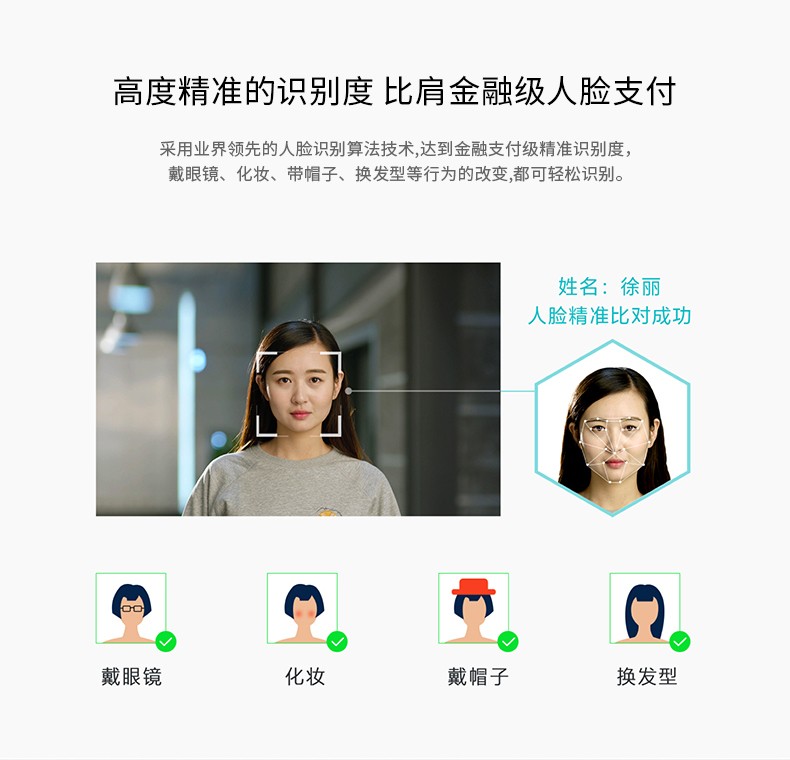 魔點MS4智能人臉閘機柱采用領(lǐng)先的人臉算法識別技術(shù),達到99.99%金融支付級精準識別度,戴帽子、戴眼鏡、化妝、換發(fā)型等都可輕松識別。
